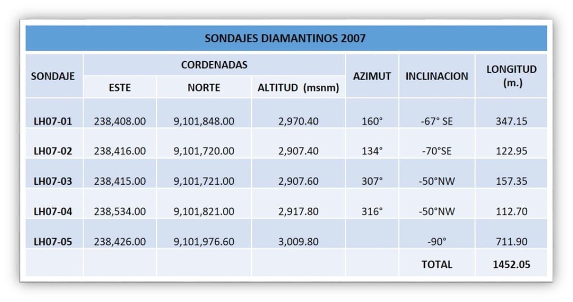 Las actividades de exploración y resultados obtenidos en los años anteriores en el proyecto dentro de la concesión Patricia, permitió detectar la existencia de una alteración hidrotermal de tipo silícea, fílica y propilítica con intenso fracturamiento en rocas intrusivas de carácter granítico. Los trabajos de exploración se focalizaron en la zona el Cura, se realizaron 5 sondeos de exploración con un total de 1452 m.